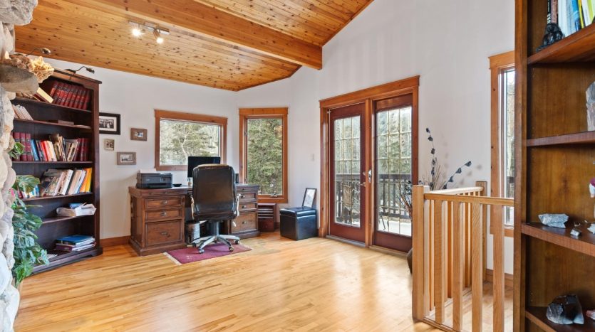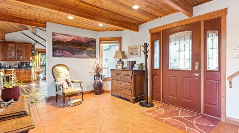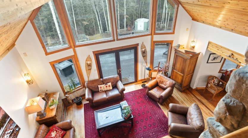 - Light-filled main level with maple hardwood floors and vaulted ceilings