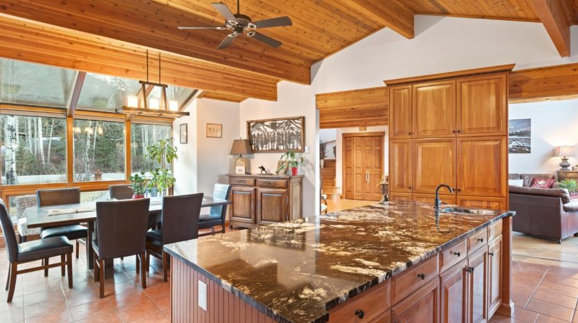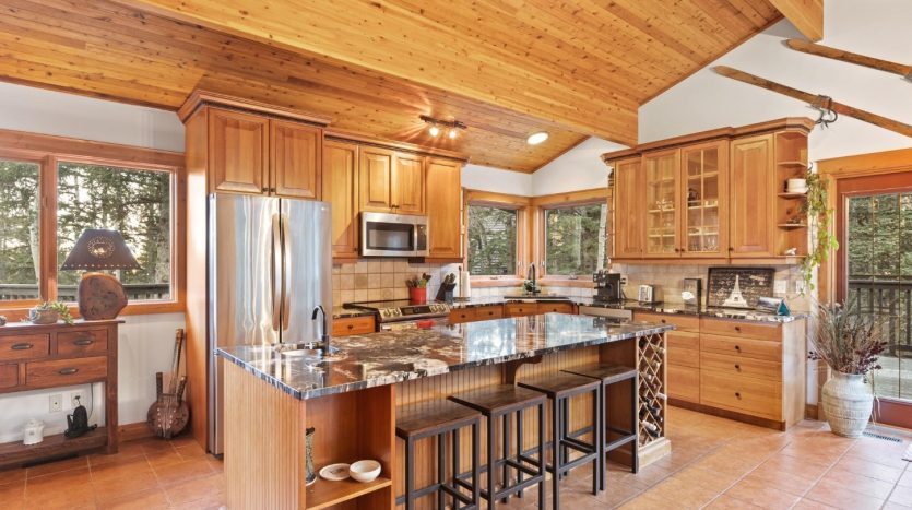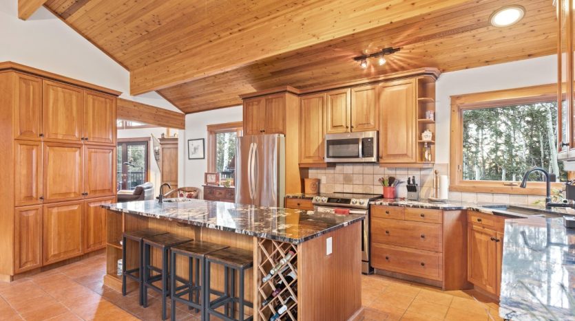 - Cook’s kitchen with cherry cabinetry and a 9-ft island